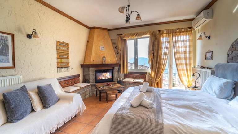 Das Semeli Guesthouse verfügt über gemütliche Zimmer und Suiten, die in warmen Erdtönen gehalten sind. Jede Unterkunft verfügt über einen eigenen Balkon, auf dem Sie die herrliche Aussicht genießen können. Zur Ausstattung gehören ein TV, eine Klimaanlage und ein Haartrockner. Einige der Unterkünfte bieten auch einen Kamin und einen separaten Sitzbereich, um Ihnen einen noch angenehmeren Aufenthalt zu ermöglichen.