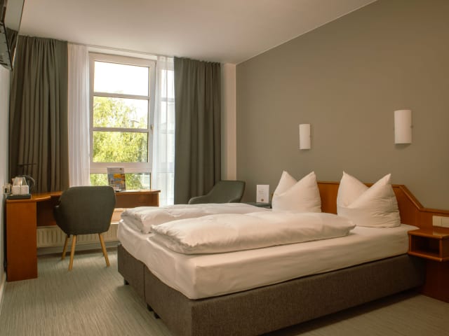 Für jeden Geschmack, jeden Bedarf das Richtige: 62 SensBase - Zimmer * Klassisch und funktionell * Sehr ruhig und geräumig * Heller Arbeitsplatz * Kaffee-/Teestation * Teilweise Gartenseite mit Blick ins Grüne * 20 qm 7 SensALL-Zimmer * Erkerzimmer mit Blick zum ruhigen Hofgarten * Großzügig, frisches und angenehmes Design * Moderner Arbeitsplatz * Französische Fenster * Parkplatz inklusive * Kopfkissenset * Kaffee-/Teestation * Alkoholfreie Getränke (0,2l) aus der Minibar kostenfrei * Bademantel und Duschhaube * 22 qm