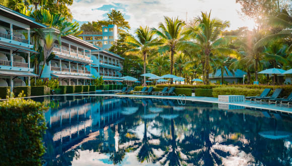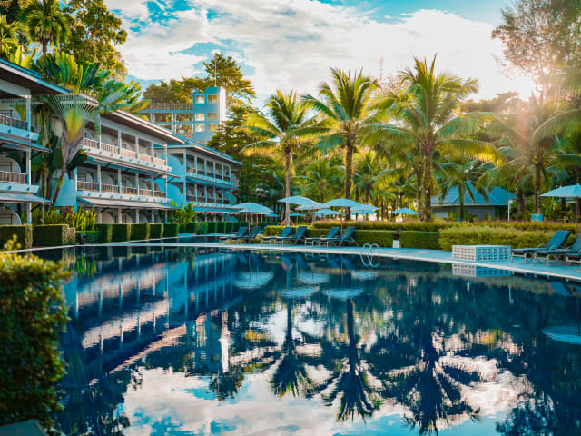 Direkt am Sandstrand in einer kleinen Bucht am Anfang des Nang Thong Beach gelegen Exklusives Hotel eingebettet in die Natur im modernem Design Restaurants und Einkaufsmöglichkeiten sind in fußläufiger Umgebung zu erreichen