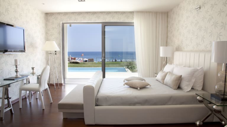 Sentido Port Royal Villas & Spa ist ein erstklassiges Design Fünf-Sterne-Hotel auf Rhodos mit einer Lage direkt am Strand, das sowohl Urlaubern als auch Geschäftsreisenden zeitgemäßen Luxus und hochwertige Dienstleistungen bietet. Klare architektonische Linien, stimmungsvolle, lichtdurchflutete Räume und eine idyllische Umgebung verschmelzen miteinander zu einem außergewöhnlichen Sinneserlebnis. Lage Das Hotel Sentido Port Royal befindet sich in Kolymbia, einer privilegierten Lage im Osten von Rhodos, direkt am Strand. Die Küste von Kolymbia besteht aus zwei Buchten mit kristallklarem Wasser und Sand- und Kiesstränden, die jedes Jahr mit der blauen Flagge ausgezeichnet werden. Die Lage ist ideal für Ausflüge über die Straße Rhodos-Lindos, die einen einfachen und schnellen Zugang zu den wichtigsten Sehenswürdigkeiten von Rhodos ermöglicht, darunter die atemberaubende mittelalterliche Stadt und der Hafen, der Golfplatz von Afandou, die malerische Burg von Lindos und ihre antiken Denkmäler. Unterkunft 66 Bungalow Doppelzimmer 32 m2 / Landblick - Poolblick - Seitlicher Meerblick 46 Bungalow / Hauptgebäude Doppelzimmer 32 m2 / Meerblick 36 Bungalow Doppelzimmer 32 m2 / Strandpromenade 24 Bungalow Doppelzimmer 32 m2 / Strandpromenade mit Gemeinschaftspool (Beheizter Pool April - Mai & Oktober - November) 8 Bungalow Doppelzimmer 32 m2 / Seitlicher Meerblick mit Außenwhirlpool 7 Bungalow Doppelzimmer 32 m2 / Meerblick mit beheiztem Mini-Außenpool (Beheizter Mini-Außenpool mit Hydromassage) 4 Suiten in Bangalow 55 m2 / Strandpromenade mit privatem Pool (Beheizter Pool April - Mai & Oktober - November) 2 Superior Suiten in Bangalow 47 m2 / Meerblick 2 Suiten in Bungalow 40 m2 / Meerblick 2 Deluxe Suiten in Bungalow 60 m2 / Seitlicher Meerblick 2 Deluxe Suiten in Bungalow 60 m2 / Meerblick 2 Deluxe Suiten in Bungalow 60 m2 / Strandpromenade 1 Cabana-Präsidentensuite 140 m2 / Strandpromenade mit privatem Pool (Beheizter Pool April - Mai & Oktober - November)