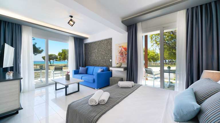 Verbringen Sie Ihren Urlaub im Hotel Sentimento, nur wenige Schritte vom wunderschönen Strand Dasilio entfernt. Genießen Sie den atemberaubenden Meerblick von Ihrer Terrasse aus und entspannen Sie in den komfortablen und klimatisierten Unterkünften. Die gut ausgestattete Küchenzeile ermöglicht es Ihnen, Ihre eigenen Mahlzeiten zuzubereiten. Entspannen Sie am eigenen Strandbereich und erkunden Sie die umliegenden Strände Skala Prinos und Aphrodite. Der internationale Flughafen Kavala ist nur 41 km entfernt.