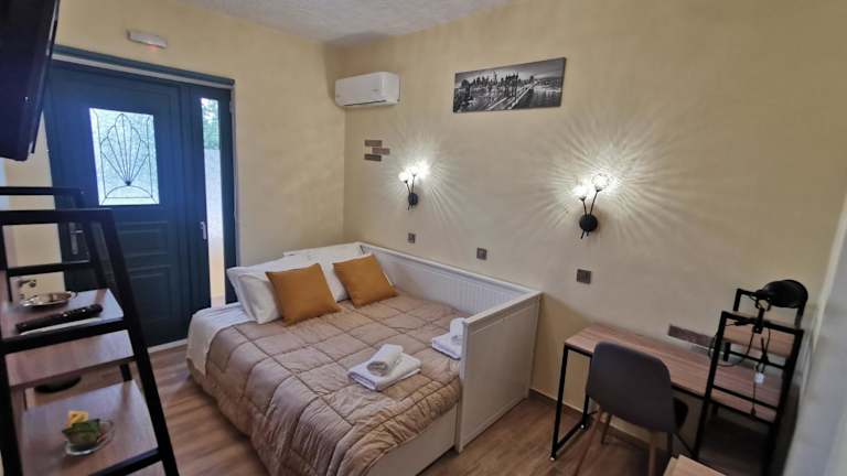 Die Zimmer in Serafi Cozy Rooms sind mit Klimaanlage, Schreibtisch, Flachbild-TV und eigenem Badezimmer ausgestattet. Handtücher und Bettwäsche werden bereitgestellt, und die Zimmer verfügen über einen Balkon mit Bergblick. Mehrere Zimmer bieten zusätzlichen Platz mit einer Veranda oder einem Patio. Zu den Annehmlichkeiten zählen auch ein Kühlschrank und eine Kaffeemaschine.