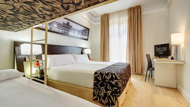 Das Hotel Sercotel Las Torres in Salamanca bietet eine ideale Lage am berühmten Plaza Mayor und ist nur wenige Gehminuten von der Kathedrale entfernt. Die Zimmer sind einfach und klimatisiert, einige verfügen über eine Hydromassage-Dusche. Das Hotel bietet auch kostenfreies WLAN und einen Fahrradverleih. Das Restaurant serviert ein Frühstücksbuffet und in der Umgebung gibt es zahlreiche Restaurants. Die Mitarbeiter an der 24-Stunden-Rezeption stehen Ihnen bei der Buchung von Tickets und Touren zur Verfügung. Die berühmte Universität von Salamanca erreichen Sie in nur 5 Minuten zu Fuß.