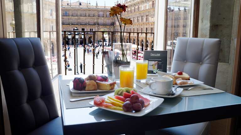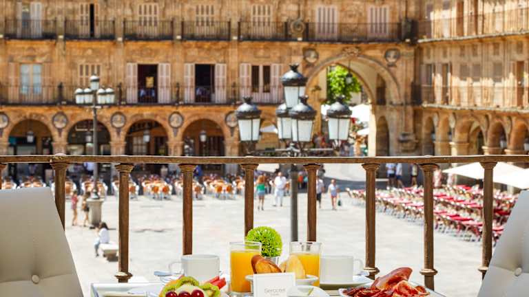 Das Hotel befindet sich direkt am Plaza Mayor und bietet eine zentrale Lage in Salamanca. Von hier aus können Sie bequem die Sehenswürdigkeiten der Stadt erkunden und haben eine gute Anbindung an den öffentlichen Nahverkehr. Der Flughafen Salamanca ist etwa 15 km entfernt und das nächste Skigebiet erreichen Sie nach ca. 100 km.