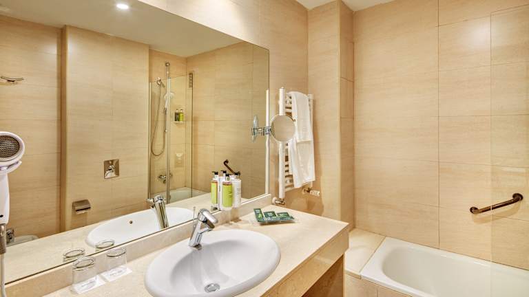 Die Zimmer verfügen über eine Klimaanlage, Heizung, ein Doppel- oder Queensize-Bett, einen Safe, einen Schreibtisch sowie einen Minikühlschrank. Unterhaltung bieten ein Flachbild-TV mit Satelliten-/Kabelempfang und kostenfreies WLAN. Die Badezimmer sind mit einer Badewanne, einer Dusche, einem Haartrockner und Pflegeprodukten ausgestattet, zudem sind rollstuhlgerechte Zimmer buchbar. Es stehen 124 Nichtraucherzimmer zur Verfügung.