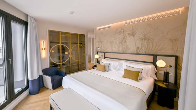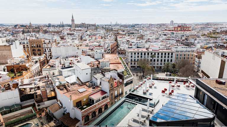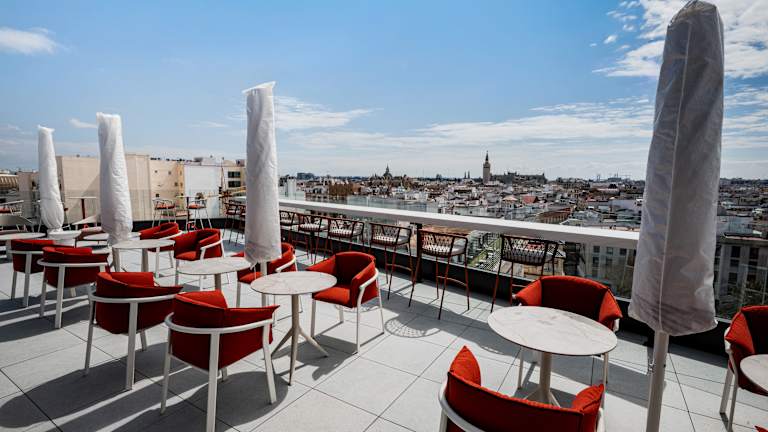 Hier fließt alles. Von der Eingangshalle bis zu den Zimmern führt das Design wie ein ruhiger Spaziergang: Holz, Metall und Glas verschmelzen zu hellen, modernen Räumen, die ohne große Worte eine Geschichte erzählen. Eine Geschichte, die Sevilla mit dem Norden, dem Seehandel und dem Fluss Guadalquivir als roter Faden verbindet. Erinnerung, Stadt und moderner Komfort, gut miteinander verwoben. Das Sercotel Sevilla Don Luciano verfügt über 116 Zimmer, einige davon mit Terrasse und Ausblick auf die Stadt, die sich perfekt eignen, um den Tag mit natürlichem Licht zu beginnen oder bei einem Blick auf Sevilla aus der Höhe ausklingen zu lassen