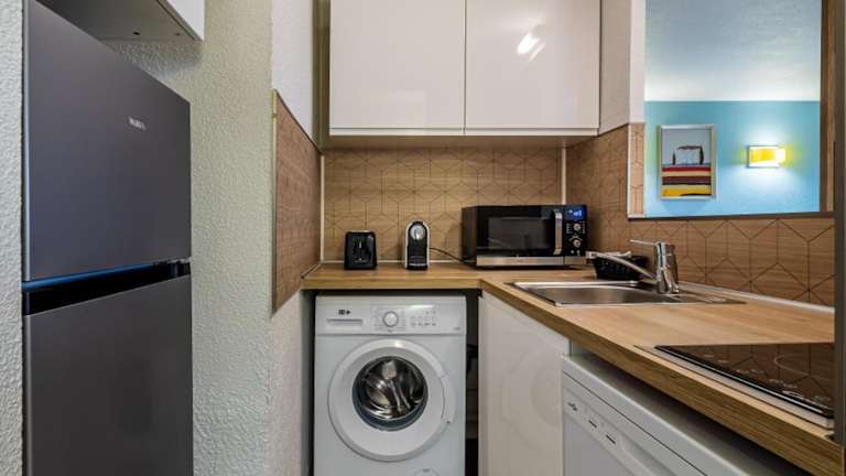 In der Unterkunft sind verschiedene Kücheneinrichtungen wie ein Kühlschrank, eine Mikrowelle, eine Herdplatte und eine Kaffeemaschine vorhanden, sodass Gäste sich selbst versorgen können. Außerdem ist Essenslieferung in die Unterkunft möglich.
