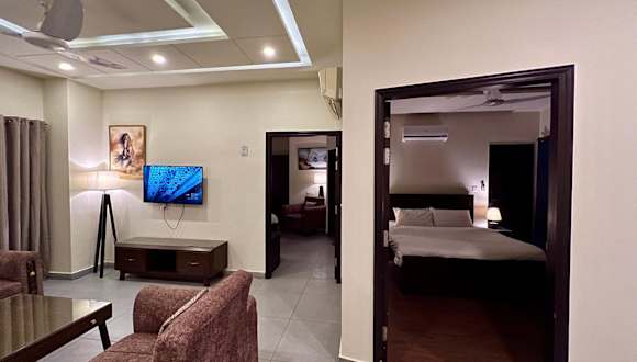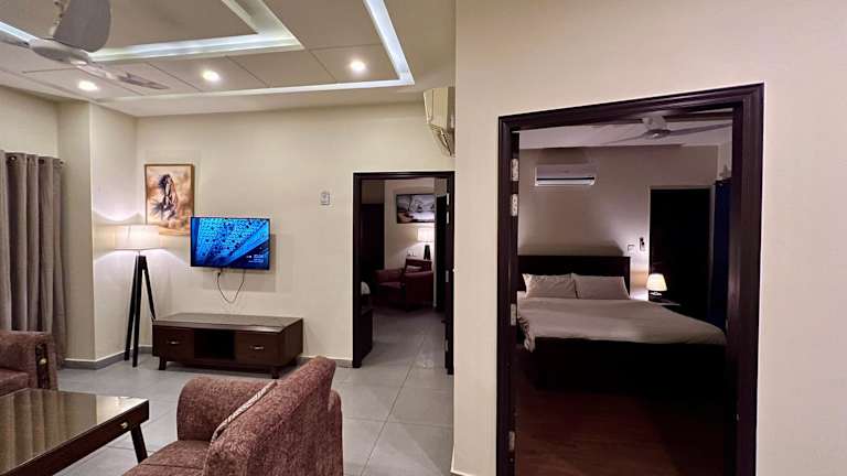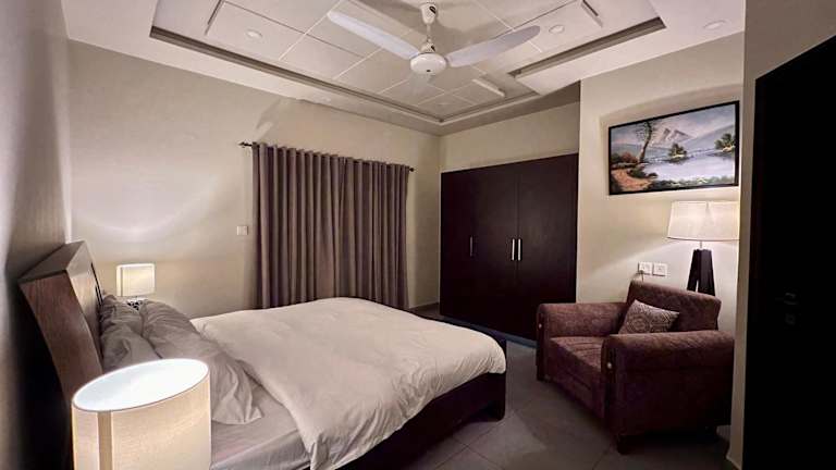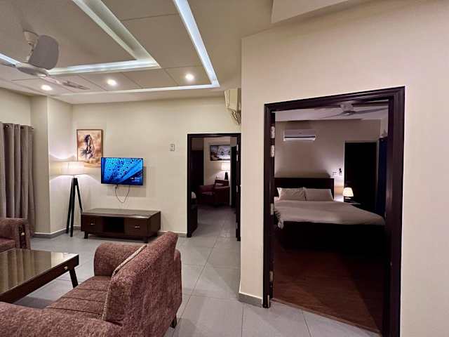 Das Hotel Serenity Corner in Islamabad bietet seinen Gästen eine komfortable Unterkunft mit Balkon und kostenfreiem WLAN. Die günstige Lage ermöglicht es den Gästen, verschiedene Sehenswürdigkeiten wie das Taxila-Museum, den Nationalpark Ayūb und den Lake View Park in kurzer Entfernung zu besuchen. Die klimatisierten Apartments bieten Platz für Familien oder Gruppen und verfügen über eine voll ausgestattete Küche und mehrere Badezimmer. Die Unterkunft bietet auch kostenfreie Privatparkplätze und eine Terrasse. Die Nähe zum Bahnhof und zum internationalen Flughafen Islamabad machen das Hotel Serenity Corner zu einem idealen Ausgangspunkt für Reisende.