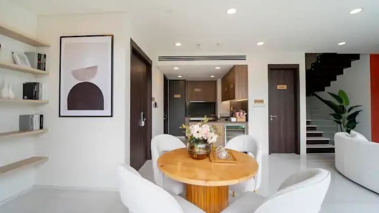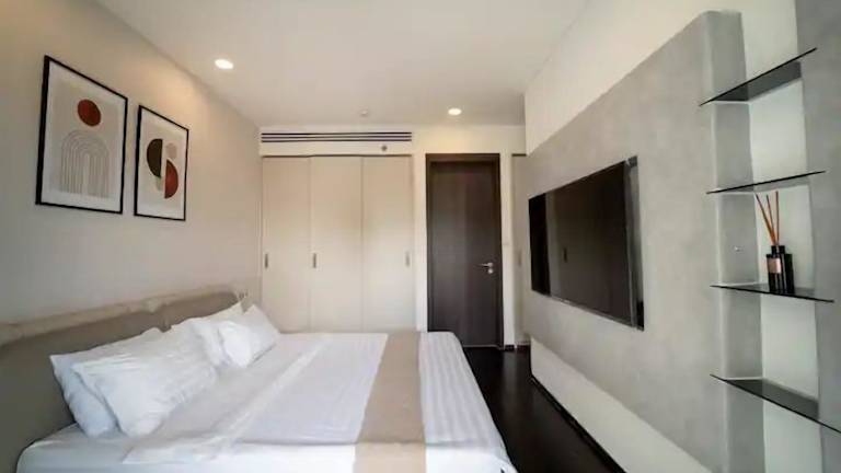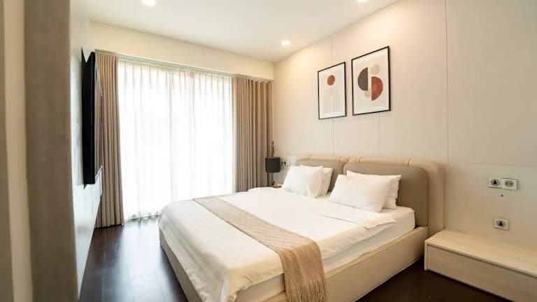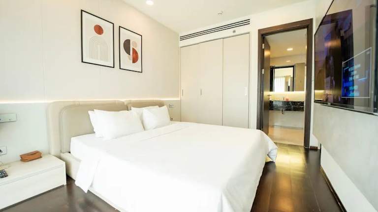 Die Unterkunft Serenity Saigon Sky Villas befindet sich in Ho-Chi-Minh-Stadt und bietet einen Blick auf die Stadt. In der Nähe liegen bekannte Sehenswürdigkeiten wie das Kriegsopfermuseum, der Tan-Dinh-Markt und der Wiedervereinigungspalast. Der Flughafen Tan-Son-Nhat ist etwa 6 km entfernt.