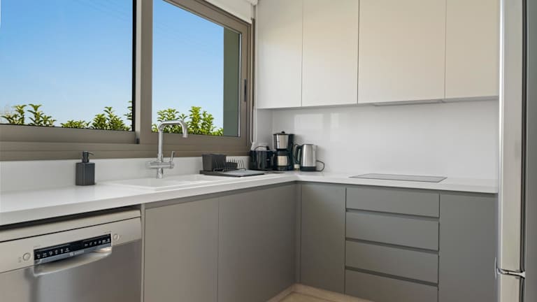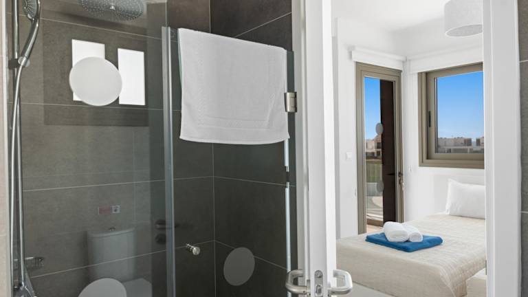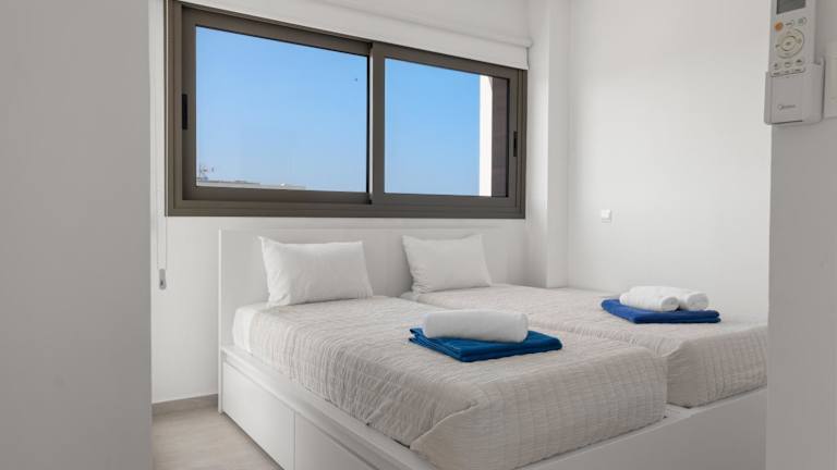 Die Villa bietet Platz in zwei Schlafzimmern und einem Wohnzimmer. Sie ist klimatisiert und beinhaltet eine voll ausgestattete Küche mit Kühlschrank und Kaffeemaschine. Darüber hinaus stehen den Gästen drei Badezimmer mit Dusche und Haartrockner zur Verfügung. Handtücher und Bettwäsche werden bereitgestellt.