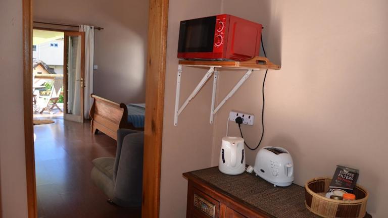 Das Apartment im serin du cap verfügt über 1 Schlafzimmer und eine Küchenzeile mit Kühlschrank, Toaster und Kaffeemaschine. Ein Flachbild-TV ist ebenfalls vorhanden.