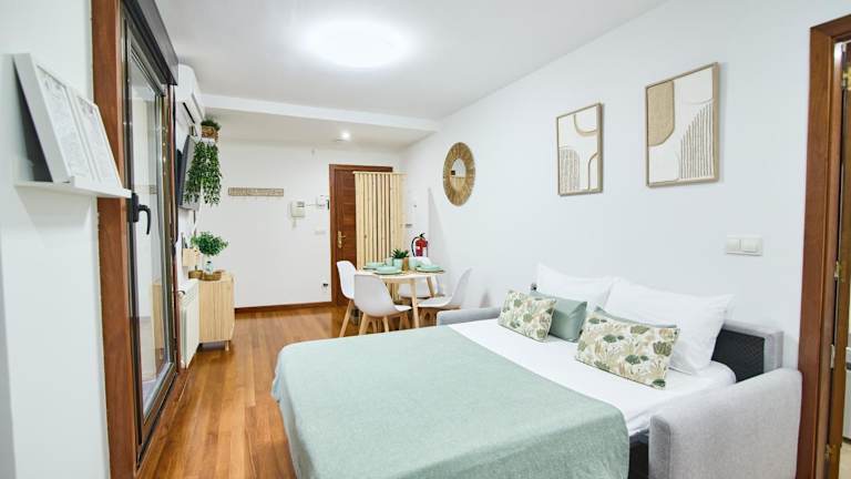 Die Ferienwohnung ist klimatisiert und umfasst ein Schlafzimmer, ein Wohnzimmer sowie eine voll ausgestattete Küche, die mit einem Kühlschrank und einer Kaffeemaschine ausgestattet ist. Des Weiteren gibt es ein Badezimmer mit einer Dusche und kostenlosen Pflegeprodukten. Handtücher und Bettwäsche werden ebenfalls bereitgestellt.
