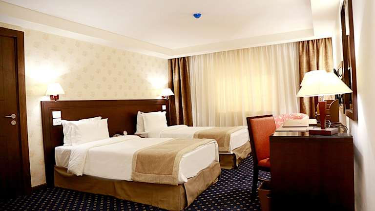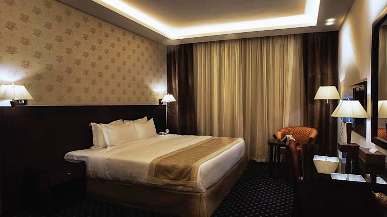 Die Zimmer sind mit Klimaanlage und Heizung ausgestattet und verfügen über verschiedene Bettgrößen, darunter Doppel-, Queensize- und Kingsize-Betten. Weitere Annehmlichkeiten sind ein Safe, eine Minibar, ein Schreibtisch, eine Tee-/Kaffeemaschine, ein Bügelset und eine Hosenpresse. Die Zimmer sind zudem mit einem TV-Gerät, einem CD-Player und einem DVD-Player ausgestattet. WLAN steht kostenfrei zur Verfügung. Die Badezimmer sind mit einer Dusche und einem Haartrockner ausgestattet und bieten Kosmetikartikel sowie eine Auswahl an Handtüchern.