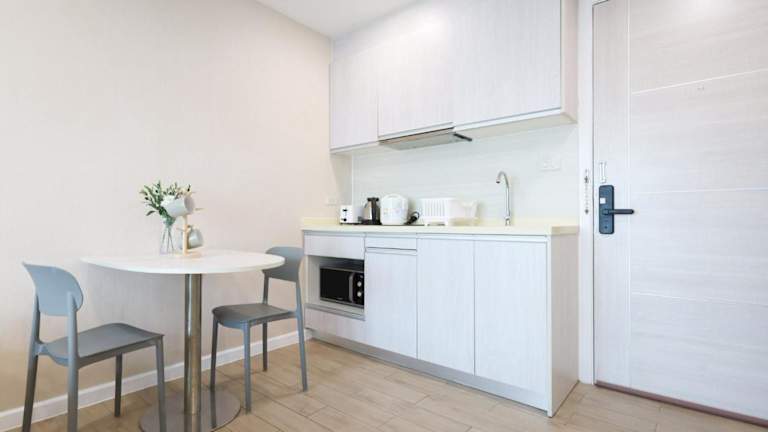 Es steht eine Bar zur Verfügung, die den Gästen die Möglichkeit bietet, Getränke zu genießen. In jedem Zimmer ist eine voll ausgestattete Küche mit Kühlschrank, Mikrowelle, Toaster und Wasserkocher vorhanden.