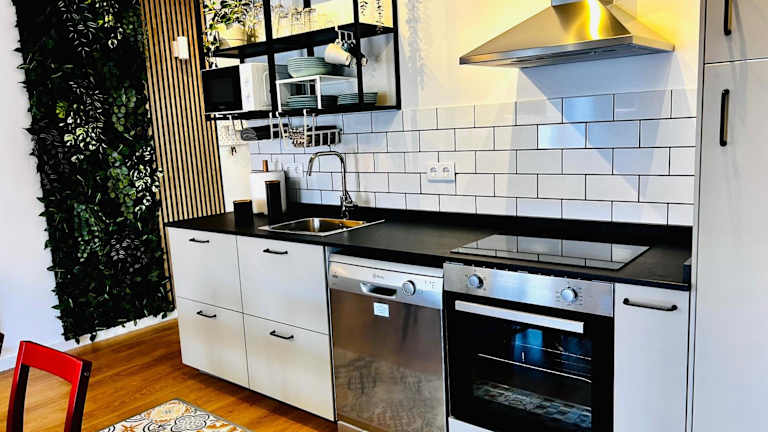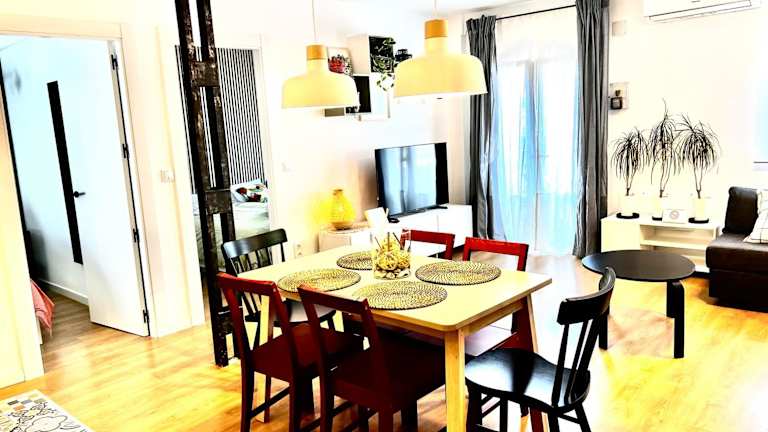 Die Ferienwohnung umfasst zwei Schlafzimmer, ein Wohnzimmer, eine vollständig ausgestattete Küche mit Kühlschrank und Kaffeemaschine sowie zwei Badezimmer mit Dusche und Haartrockner. Zudem ist die Unterkunft mit einer Klimaanlage und einem Flachbild-TV ausgestattet.