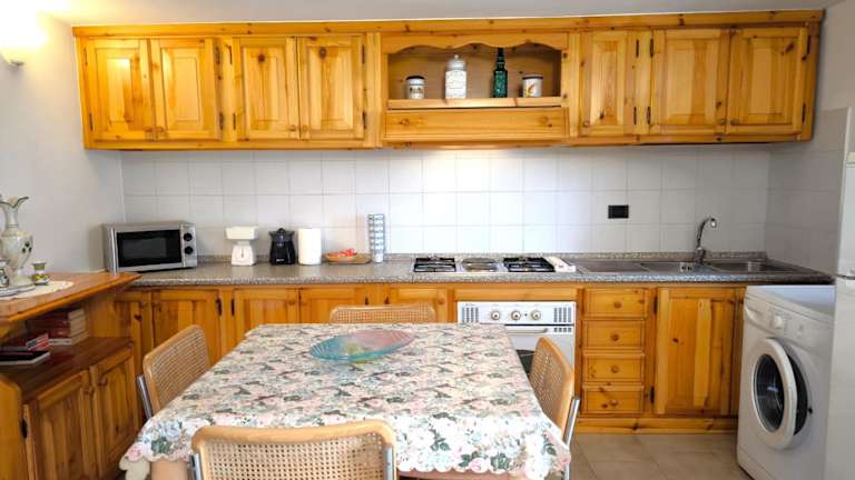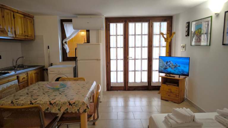Die Ferienwohnung umfasst ein Schlafzimmer, ein Wohnzimmer, eine voll ausgestattete Küche mit Kühlschrank und Kaffeemaschine sowie ein Badezimmer mit Dusche und Bademänteln. Handtücher und Bettwäsche werden bereitgestellt.