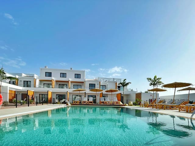 SHAMBHALA Fuerteventura ist eine ökologische Boutique-Ferienanlage mit 44 exklusiven Boho-Chic-Apartments, dem Endorfina "Wellness" Club, einer Gastro-Poolbar und großzügigen Gemeinschaftsbereichen. Shambhala wurde mit einer starken Vision der Nachhaltigkeit geschaffen und wurde komplett umgebaut und mit natürlichen Materialien renoviert, um die Umwelt unseres Planeten zu ehren und zu respektieren. In der Gemeinde La Oliva, nur 10 Minuten vom Naturpark der Dünen von Corralejo entfernt, nördlich von Fuerteventura, strategisch günstig gelegen, um die Insel zu erkunden, ist SHAMBHALA Fuerteventura die erste Ferienanlage auf der Insel, die die SLOW-Bewegung entwickelt, in der Sie erlauben Sie sich, die Revolutionen des Alltags in jeder Hinsicht herabzusetzen. Wir ermöglichen Außenräume für die Praxis von Meditation, Yoga, sportlichen Aktivitäten und mehr. Gärten mit tropischem Geschmack mitten in der Wüste zum Lesen, Spazierengehen oder um das Leben in einem sorgfältig detaillierten Pool zu genießen. Apartments mit einem Schlafzimmer, vom Wohnzimmer getrennt, schallisoliert, mit voll ausgestatteter Küche, Queensize-Bett mit Memoryschaum-Matratze, Aloe-Vera-Kissen, Badezimmer mit Tageslicht und Regendusche, Smart-TV, Highspeed-WLAN, großer und sonniger Terrasse. Unsere Gastro-Poolbar bietet Frühstück und Brunch à la carte mit der Möglichkeit, es auf ihrer Terrasse, im Hängemattenbereich oder auf der privaten Terrasse Ihres Apartments zu probieren. Vervollständigen Sie Ihr Erlebnis maximalen Wohlbefindens mit dem Endorfina Club. Unsere hochqualifizierten Fachleute arbeiten in Synergie, um Ihren Körper, Geist und Seele durch verschiedene Disziplinen zu verbessern, die die Essenz von Fuerteventura und seinen Lebensstil widerspiegeln und den Bereich der Prävention, Erhaltung und Gesundung abdecken. Durch Yoga, Personal Training, Functional Training, Physiotherapie, Osteopathie und entspannende Behandlungen, zusätzlich zu unseren aktiven touristischen Aktivitäten wie Surfen, Kitesurfen, Windsurfen, SUP, Mountainbike-Verleih. Ein unvergesslicher Aufenthalt wird Ihnen in Erinnerung bleiben, den Sie zweifellos teilen und wiederholen möchten.