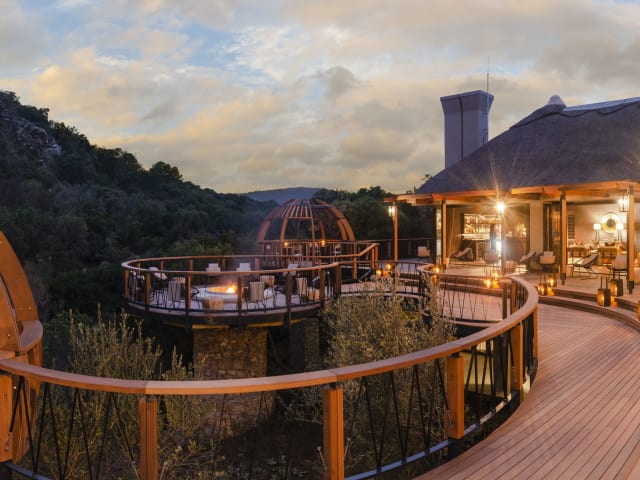Lassen Sie sich zu einem afrikanischen Abenteuer entführen. Unsere Premium Lodge Eagles Crag bietet eine ultimative luxuriöse, private und atemberaubende Kulisse. Die Suiten sind aus Glas und Stein errichtet. Sie werden sich in den unverbauten Aussichten auf die umliegenden Felsformationen sonnen, über denen die Adler kreisen. Lounge im Obergeschoss mit offenem Kamin auf und Aussichtsdeck mit Feuerstelle Lounge im Untergeschoss mit Innenkamin, Fernseher und Billardtisch Fitnesscenter Souvenirladen Entspannungsbereich mit Hydrobad, Dampfbad und Sauna Essbereiche drinnen und im Freien WiFi Verbindung