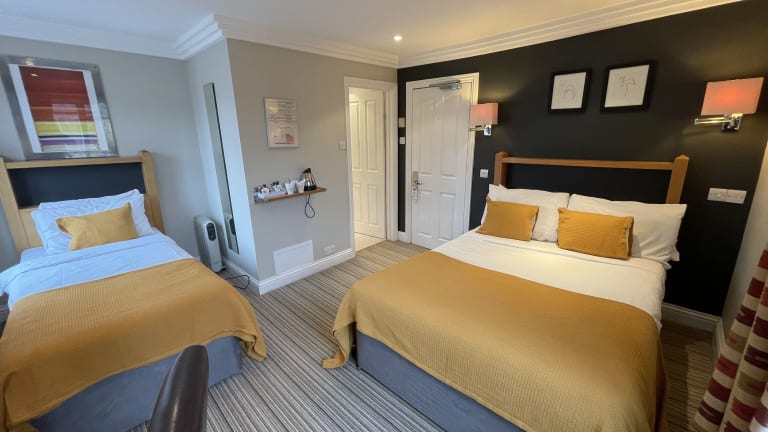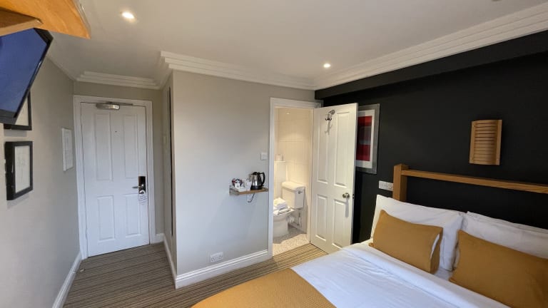 Die Zimmer im Shandon Hotel sind sauber, modern und stilvoll eingerichtet. Jedes Zimmer verfügt über einen LED-Flachbild-TV mit integriertem Freeview, bequeme Betten und frische Bettwäsche. Die meisten Badezimmer bieten Granit-Ablageflächen, wandgroße Spiegel, Chromarmaturen und schlichte, aber stilvolle, weiße Fliesen.