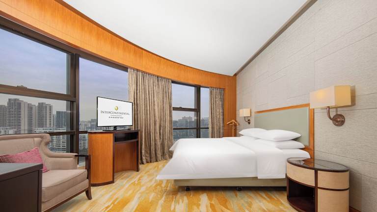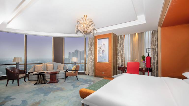 Die Zimmer im Shangri-La Hotel, Changzhou sind gut ausgestattet und bieten eine elegante Atmosphäre. Jedes Zimmer verfügt über einen Flachbild-TV, eine Minibar und einen Safe. Die luxuriösen Möbel und Stoffe sowie die raumhohen Fenster schaffen ein stilvolles Ambiente. Das Marmorbad ist mit einer separaten Dusche ausgestattet und bietet kostenfreie Hausschuhe und Pflegeprodukte. Genießen Sie entweder den Blick auf die Stadt oder den atemberaubenden Seeblick von Ihrem Zimmer aus.