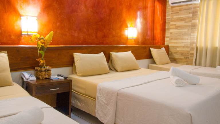 Die Zimmer sind klimatisiert und verfügen meist über einen Balkon oder eine Terrasse. Die Ausstattung umfasst ein Queensize-Bett, ein Telefon sowie ein eigenes Bad mit einer Badewanne. Es sind Familien- und Nichtraucherzimmer verfügbar.