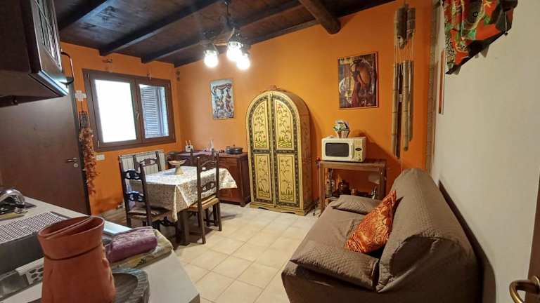 Das Apartment im Shanti Ca' casa indipendente con giardino verfügt über ein gemütliches Schlafzimmer, eine gut ausgestattete Küche mit Kühlschrank und Backofen, einen komfortablen Sitzbereich und ein Badezimmer mit Bidet. Das Apartment ist klimatisiert und bietet kostenfreies WLAN. Handtücher und Bettwäsche werden gestellt, um Ihnen einen angenehmen Aufenthalt zu ermöglichen.