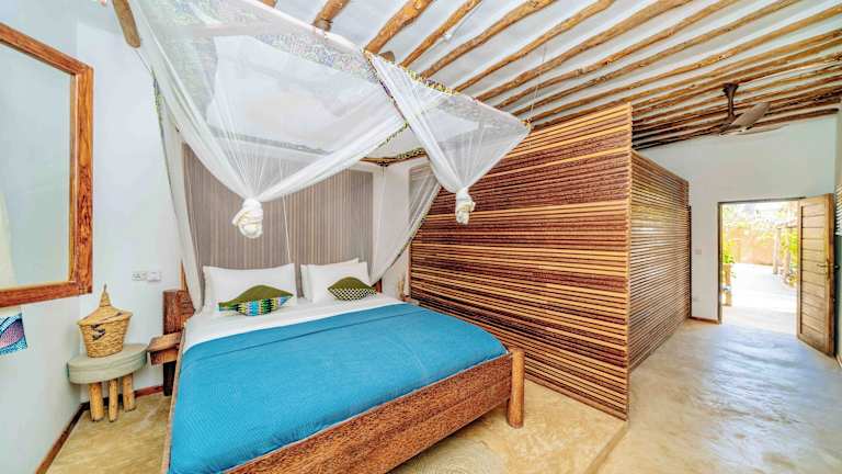 Die Shanuo Beach Bungalows befinden sich in Michamvi, einem idyllischen Küstenort an der Ostküste von Sansibar. Der Strand Michamvi Pingwe liegt direkt vor der Haustür und bietet feinen Sand und kristallklares Wasser. In der Umgebung können Sie auch den Wald Jozani erkunden, der etwa 24 km entfernt liegt. Die Gegend ist ideal zum Radfahren und bietet viele Möglichkeiten, die atemberaubende Natur zu genießen.
