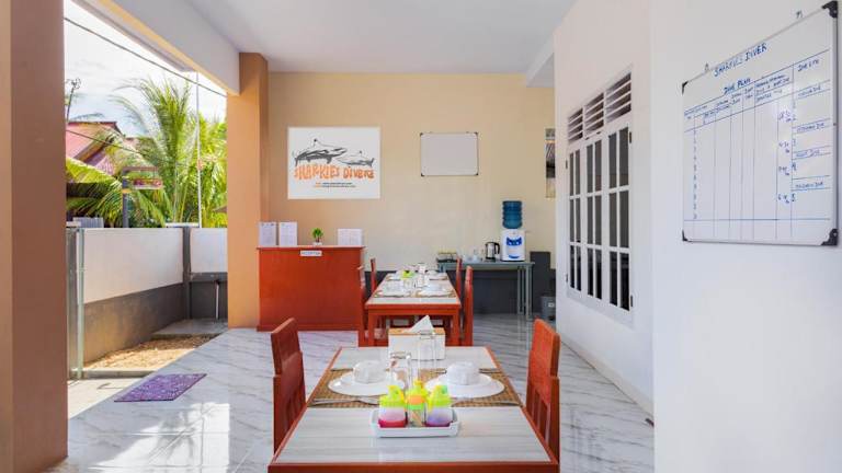 Die Zimmer in Sharkies Divers Bunaken sind mit einem Balkon sowie einem eigenen Badezimmer mit Dusche ausgestattet. Die Einrichtungen umfassen zudem schallisolierte Zimmer und Klimaanlage.
