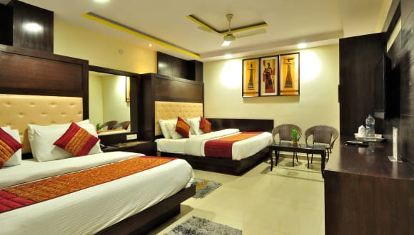 Das Hotel Shelton in Neu-Delhi bietet eine verkehrsgünstige Lage in der Nähe des Bahnhofs Delhi und des U-Bahnhofs Connaught. Es verfügt über kostenfreies WLAN, eine 24-Stunden-Rezeption und verschiedene Wellnessanwendungen. Das berühmte Restaurant auf dem Dach serviert authentische indische, chinesische und kontinentale Gerichte. Die Zimmer sind in neutralen Farben gehalten und bieten eine komfortable Ausstattung. Das Hotel ist der ideale Ausgangspunkt, um die Sehenswürdigkeiten der Stadt zu erkunden.
