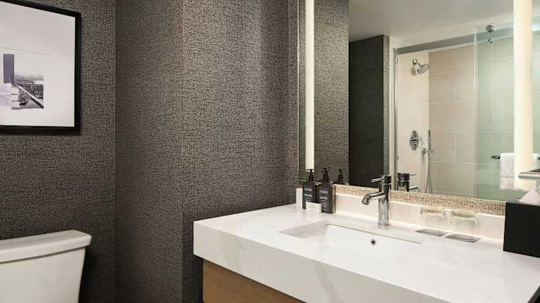Die Zimmer im Sheraton Baltimore North sind mit Klimaanlage, Heizung sowie einem Doppel- oder Kingsize-Bett ausgestattet. Weitere Annehmlichkeiten sind ein Schreibtisch, Kühlschrank, Mikrowelle, Tee-/Kaffeemaschine und ein Fernseher. Die Badezimmer verfügen über Dusche und Badewanne, Haartrockner und Telefon. Auf Wunsch sind rollstuhlgerechte Zimmer verfügbar.