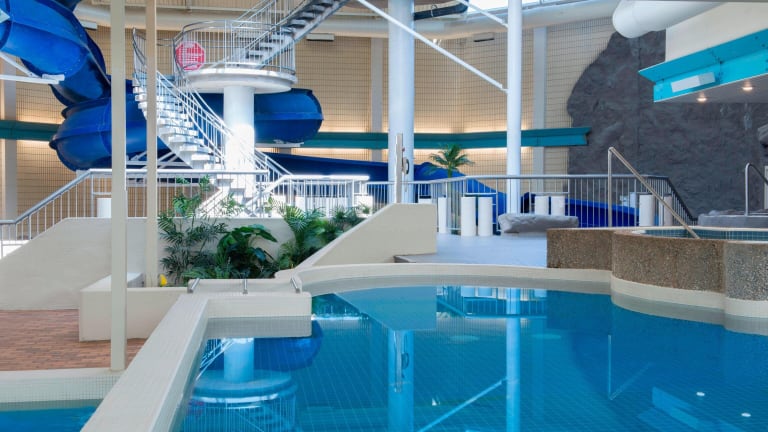 Das Hotel bietet ein umfangreiches Freizeitangebot mit einem Fitnessraum sowie Innen- und Außenpools. Ein Kinderbecken, Whirlpool, Wasserrutsche und eine Sonnenterrasse mit Liegen stehen zur Verfügung. Es gibt auch die Möglichkeit für Radfahren und andere sportliche Aktivitäten.