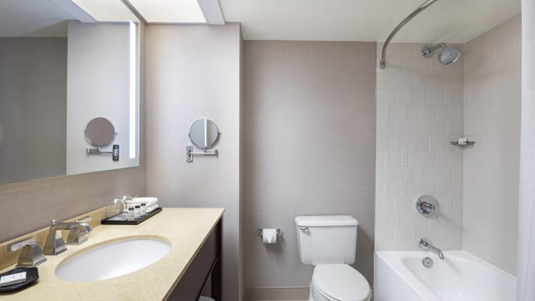 Die Zimmer im Sheraton Edison Hotel sind mit modernen Annehmlichkeiten wie einem Flachbild-TV und Pflegeprodukten von Bliss ausgestattet. Das Sheraton Sweet Sleeper Bett und Bettwäsche mit Fadenstärke 300 sorgen für einen erholsamen Schlaf. Das Hotel bietet auch einen Innenpool und ein hochmodernes Fitnesscenter sowie ein Businesscenter und Spieltische in der Lobby.