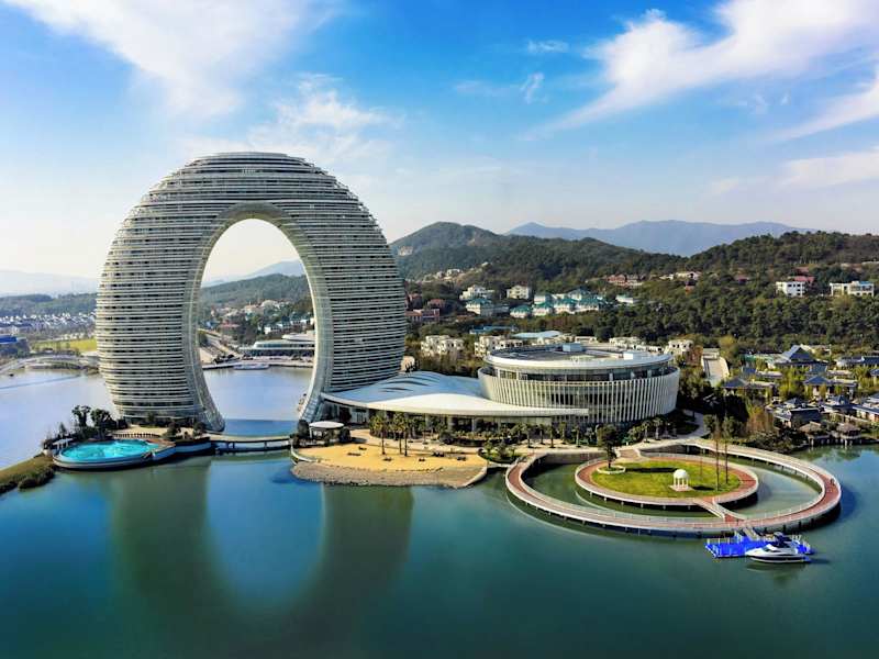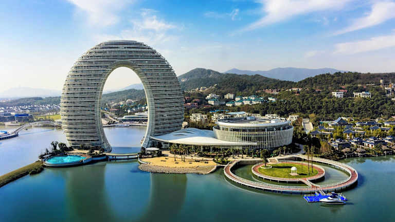 Das Sheraton Huzhou Taihu Lake Hot Spring Resort & Spa am Ufer des Taihu-Sees beeindruckt mit seiner einzigartigen ringförmigen Architektur und einer breiten Palette an Freizeiteinrichtungen. Von einem Spielezimmer und einem Fitnesscenter bis hin zu einem Wellnessbereich und einer Bowlingbahn gibt es hier für jeden etwas zu entdecken. Die luxuriösen Zimmer sind stilvoll eingerichtet und bieten einen eigenen Balkon und einen gemütlichen Sitzbereich. Genießen Sie internationale Fusionsküche im Feast oder lassen Sie sich von köstlichen kantonesischen Mahlzeiten im Yue verwöhnen.