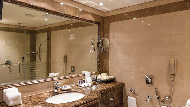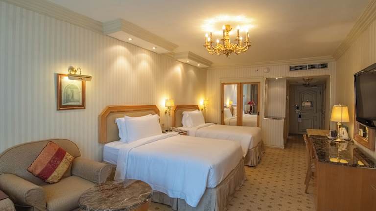 Die 310 Zimmer des Sheraton Kuwait sind elegant und im arabischen Stil gestaltet. Jedes Zimmer verfügt über moderne Möbel, einen Flachbild-TV und kostenfreies WLAN. Die Badezimmer sind luxuriös ausgestattet und bieten Annehmlichkeiten wie Haartrockner, Bademäntel und Hausschuhe. Für zusätzlichen Komfort stehen Familien- und Nichtraucherzimmer zur Verfügung.