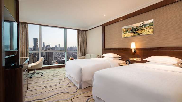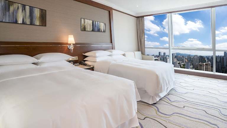 Das Sheraton Nanjing Kingsley Hotel & Towers bietet insgesamt 350 Zimmer, die auf 41 Etagen verteilt sind. Die Zimmer sind geräumig und klimatisiert, modern eingerichtet und bieten Annehmlichkeiten wie einen eigenen Safe, Kaffee- und Teezubehör sowie einen Flachbild-Kabel-TV. Die Badezimmer sind gut ausgestattet und verfügen über kostenfreie Pflegeprodukte sowie einen Haartrockner.