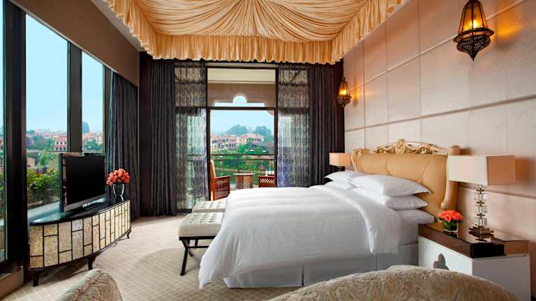 Das Sheraton Qingyuan Lion Lake Resort ist ein luxuriöses Resort, das durch seine arabische Architektur besticht und einen atemberaubenden Blick auf den Lion Lake bietet. Mit zahlreichen Annehmlichkeiten wie Innen- und Außenpools, einem Tennisplatz, einem Fitnesscenter und einem Miniclub ist für jeden Gast etwas dabei. Die Zimmer und Suiten bieten luxuriösen Komfort und eine ruhige Aussicht auf die Natur. Genießen Sie die erlesene Auswahl an Gerichten in einem der 5 Restaurants des Resorts.