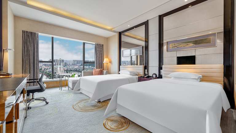 Die Zimmer im Sheraton Zhongshan Hotel sind geräumig und modern eingerichtet. Jedes Zimmer verfügt über eine vollständige Klimatisierung und Annehmlichkeiten wie einen eigenen Safe, Kaffee- und Teezubereitungsmöglichkeiten und einen Flachbild-Sat-TV. Das private Badezimmer ist mit kostenfreien Pflegeprodukten und einem Haartrockner ausgestattet.