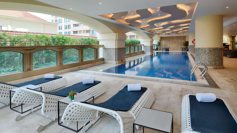 Das Hotel verfügt über ein Fitnesscenter, in dem Gäste aktiv bleiben können. Außerdem sind Wellnesseinrichtungen wie eine Sauna und ein Whirlpool vorhanden, die zur Entspannung einladen.