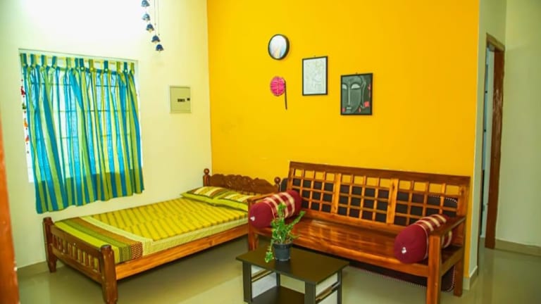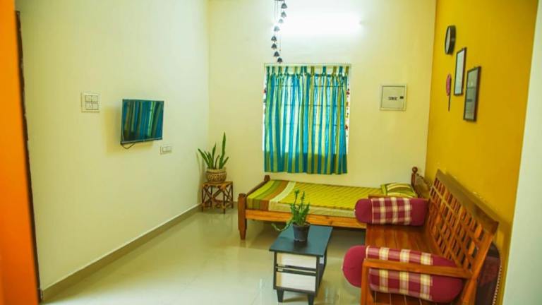 SHI's Bhairavi Peaceful 2bhk villa bietet eine komfortable Unterkunft mit zwei Schlafzimmern und zwei Badezimmern, ideal geeignet für Familien oder kleine Gruppen. Die Villa verfügt über eine Terrasse, einen Garten sowie einen Zimmerservice und ist eine Nichtraucherunterkunft.