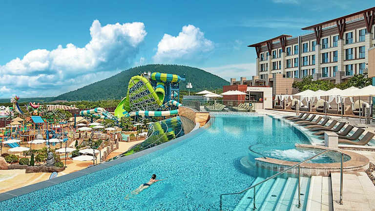 Das Shinhwa Jeju Shinhwa World Hotels in Seogwipo ist eine ideale Unterkunft für Reisende, die Komfort und Entspannung suchen. Mit einem Außenpool, einem Fitnesscenter und einem Garten bietet das Hotel eine Vielzahl von Annehmlichkeiten, um den Aufenthalt angenehm zu gestalten. Die klimatisierten Zimmer sind modern eingerichtet und verfügen über einen Flachbild-Sat-TV, einen Safe und ein eigenes Bad. Einige Zimmer bieten zudem einen Balkon. Das Hotel bietet ein amerikanisches Frühstück und verfügt über Einrichtungen wie einen Kinderspielplatz, einen Whirlpool und ein Businesscenter. Die Lage des Hotels ermöglicht es den Gästen, Sehenswürdigkeiten wie das Osulloc Tea Museum und das Jeju Jungmun Resort in kurzer Entfernung zu erkunden.