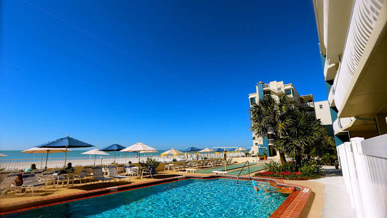 Das Shoreline Island Resort in Madeira Beach, Florida, ist ein exklusives Erwachsenenhotel am Golf von Mexiko. Hier können Sie einen entspannten und ruhigen Urlaub ab 21 Jahren genießen. Mit eigenem Strandbereich, kostenfreiem WLAN und voll ausgestatteten Küchen in allen Unterkünften bietet das Resort alles, was Sie für einen komfortablen Aufenthalt benötigen. Entspannen Sie am beheizten Außenpool, trainieren Sie im Fitnesscenter oder spielen Sie eine Runde Shuffleboard. In der Nähe finden Sie auch verschiedene Attraktionen wie den Johns Pass Village and Boardwalk und den Redington Long Pier zum Angeln.