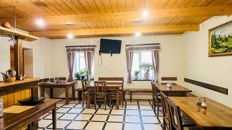 Das Shum Cheremosha in Verkhovyna ist eine charmante Unterkunft in der Nähe der Karpaten, die Ihnen eine entspannte Atmosphäre und zahlreiche Freizeitmöglichkeiten bietet. Mit kostenfreiem WLAN, einer Sauna und einer gut ausgestatteten Gemeinschaftsküche ist dieses Hotel ideal für einen erholsamen Aufenthalt. Genießen Sie die Natur, den Garten und den Grillplatz oder erkunden Sie die Umgebung mit Aktivitäten wie Radfahren, Reiten und Wandern. Kostenfreie Parkplätze stehen ebenfalls zur Verfügung.