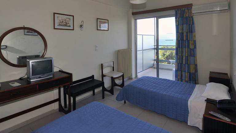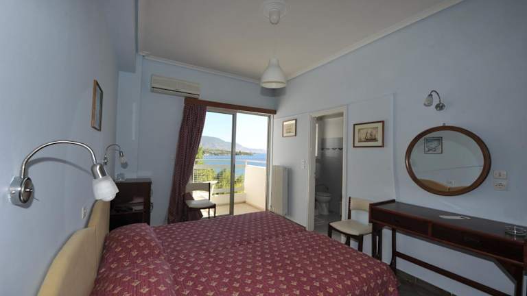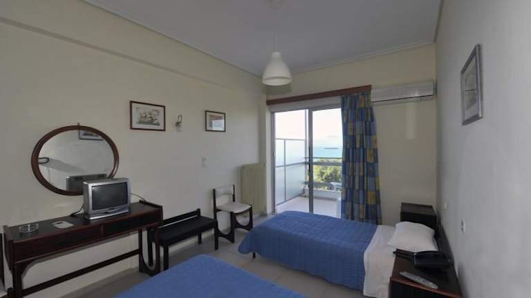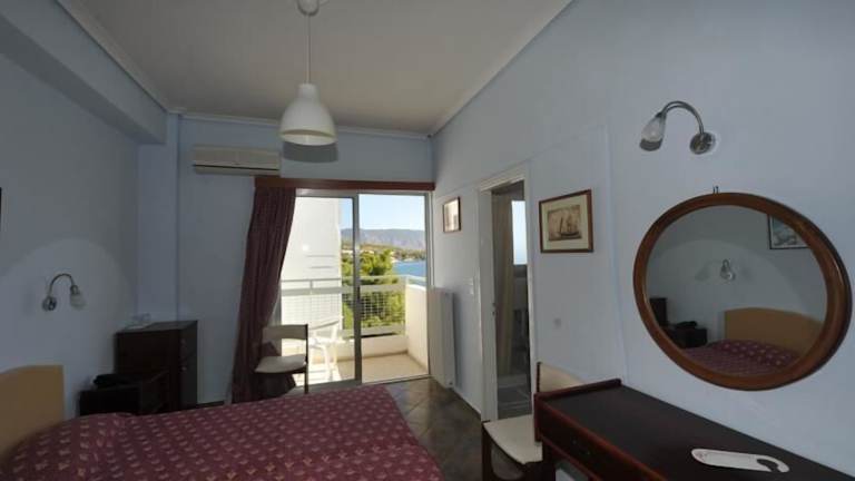 Die Zimmer im Siagas Beach Hotel sind klimatisiert und verfügen über einen Balkon mit Blick auf die Bergkette Gerania oder den Saronischen Golf. Zur Ausstattung gehören ein TV, ein Kühlschrank und ein eigenes Bad mit Dusche. Ein Sitzbereich ist ebenfalls vorhanden.