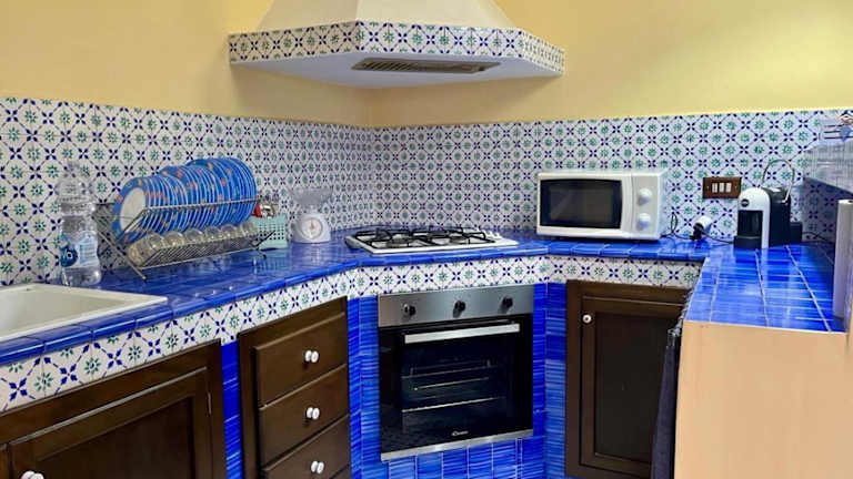 Die Ferienwohnung beinhaltet zwei Schlafzimmer, ein Wohnzimmer und eine komplett ausgestattete Küche mit Ofen und Kaffeemaschine sowie zwei Badezimmer mit Bidet und Dusche. Handtücher und Bettwäsche werden bereitgestellt.