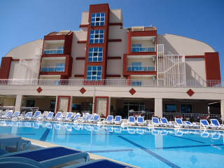 Unser Hotel SIDE WEST PARK befindet sich 600 m vom Sand-/Kiesstrand entfernt. Für Ihren Komfort verfügt das Hotel über einen Kiosk, 3 Aufzüge, eine Rezeption, einen Konferenzraum, eine Lobby und eine Klimaanlage. In dem 5-stöckigen Hotel wird Englisch und Deutsch gesprochen. Für Kinder gibt es die Möglichkeit sich auf einem Spielplatz auszutoben. Ihnen steht ein saisonal geöffneter Pool mit Frischwasser und mit getrenntem Kinderbecken zur Verfügung. Eine Poolbar vor Ort, bietet den Gästen Entspannung bei einem Drink. Sonnenschirme und -liegen stehen für Sie kostenlos am Strand und am Pool zur Verfügung. Vom Hotel aus erreichbar: Flughafen AYT (65 km), Flughafen GZP (115 km) und Zentrum (7 km).