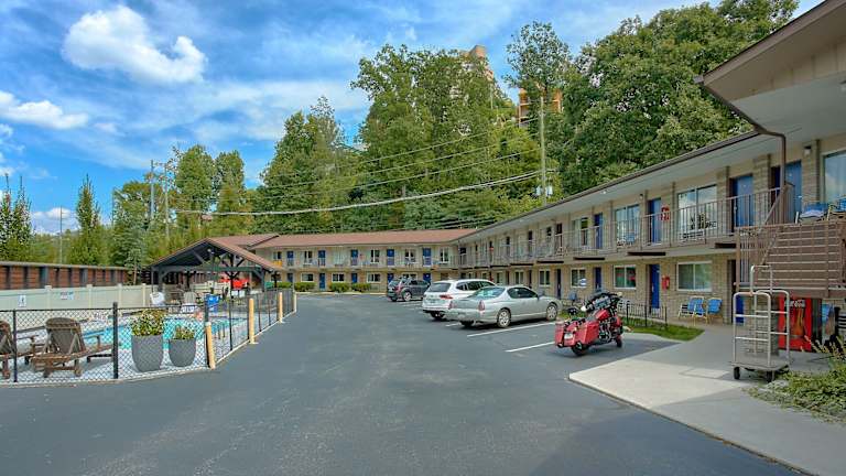Die Lodge bietet Zimmer und Hütten in drei Gebäuden sowie zahlreiche Annehmlichkeiten, darunter einen Innenpool, zwei Außenpools, eine Sauna und Wäschemöglichkeiten. Der Trolleybus von Gatlinburg stoppt direkt vor dem Hotel. Das Mindestalter für den Check-in beträgt 21 Jahre, und Haustiere sind nicht gestattet.