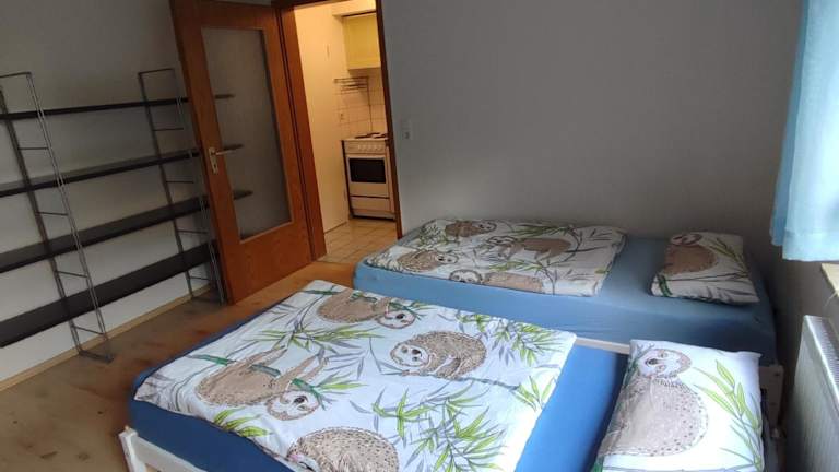 Die Ferienwohnung verfügt über ein Schlafzimmer, eine voll ausgestattete Küche mit Kühlschrank und Ofen sowie ein Badezimmer mit Dusche, Haartrockner und Waschmaschine. Handtücher und Bettwäsche werden bereitgestellt.