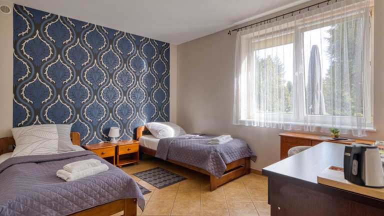 Siedlisko Żurawie bietet Übernachtungsmöglichkeiten mit einem Garten, einem kostenlosen Privatparkplatz, einer Terrasse und einem Restaurant. Zur Ausstattung der Unterkunft gehören eine Bar sowie ein Innenpool und eine Sauna. Des Weiteren ist Zimmerservice verfügbar und es wird kostenloses WLAN angeboten. Einige Zimmer verfügen über einen Balkon.
