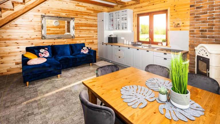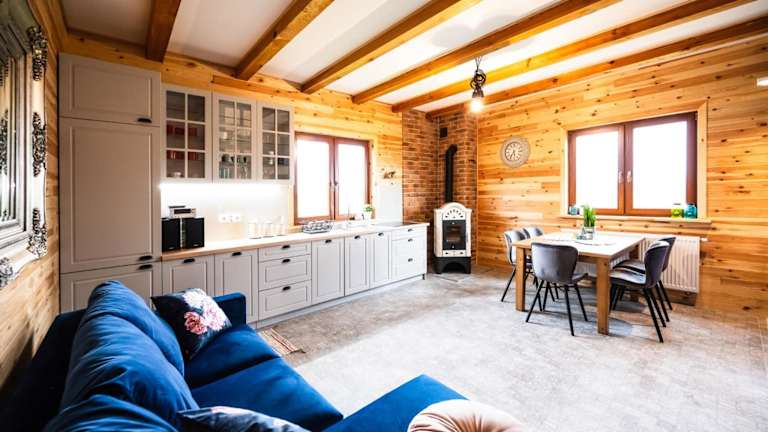 Das Chalet im Sielsko Anielsko Zabłocie bietet komfortable Unterkünfte mit einem herrlichen Blick auf den Garten. Das Chalet verfügt über eine Terrasse, auf der Sie die Natur genießen können. Im Innenbereich finden Sie einen gemütlichen Sitzbereich und einen Flachbild-TV. Die voll ausgestattete Küche bietet alles, was Sie für Ihre Mahlzeiten benötigen, einschließlich Kühlschrank, Geschirrspüler, Mikrowelle, Kochfeld und Wasserkocher. Das eigene Badezimmer ist mit einer Dusche ausgestattet.