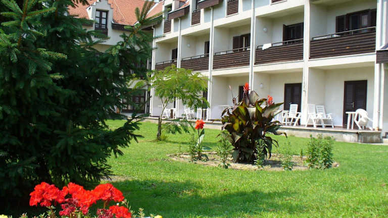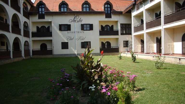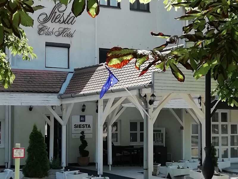 Das Siesta Club Hotel in Harkány ist der ideale Ausgangspunkt für einen erholsamen Aufenthalt in der Nähe des berühmten Heilbads. Die gemütlichen Apartments bieten eine funktionale Küche und einen Balkon mit Blick auf den ruhigen Innenhof oder den Garten. Im hoteleigenen Restaurant können Sie ungarische Küche genießen und in der Bar Siesta erlesene Weine aus der Region probieren. Die zentrale Lage ermöglicht es Ihnen, alle interessanten Gegenden der Stadt bequem zu Fuß oder mit dem Fahrrad zu erreichen. Der große Park des Heilbads lädt mit seinen Medizinalbädern, Pools und dem Wellnesscenter zum Entspannen und Wohlfühlen ein.